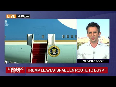 President Donald Trump heads to Egypt after delivering a historic speech to the Israeli parliament. Trump is visiting the Middle East to celebrate a peace deal that has halted the war in Gaza and secured the release of hostages by Hamas. But many questions remain about the future of Gaza and how it will be governed. Bloomberg’s Oliver Crook is in Jerusalem with the latest.
