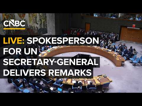 The spokesperson for the United Nations Secretary-General António Guterres delivers remarks on Monday.